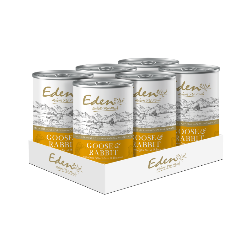 Eden's range of pet foods are formulated to be as close to the ancestral diet of your dog as we can get. High meat content with minimal carbohydrates combined with carefully selected micro-nutrients gives the correct balance of nutrition and taste. Eden Gourmet Goose and Rabbit combines the powerful anti-inflammatory properties of Green Lipped Mussel and Turmeric with gentle pre-biotics and highly digestible proteins for one of the best-canned foods available. It may be fed in place or alongside raw foods and combined with our dried food range as tasty a topper. Suitable for puppies from weaning age, juniors, adults and seniors alike. Green Lipped Mussel contains essential omega-3 fatty acids, glycosaminoglycans (chondroitin sulphate), glutamine, vitamins C and E and antioxidant micronutrients (including zinc, copper and selenium) that can be beneficial in helping to maintain joint health. Turmeric has been used in India for thousands of years as a spice and medicinal herb, with potent anti-inflammatory properties and a host of additional health benefits.