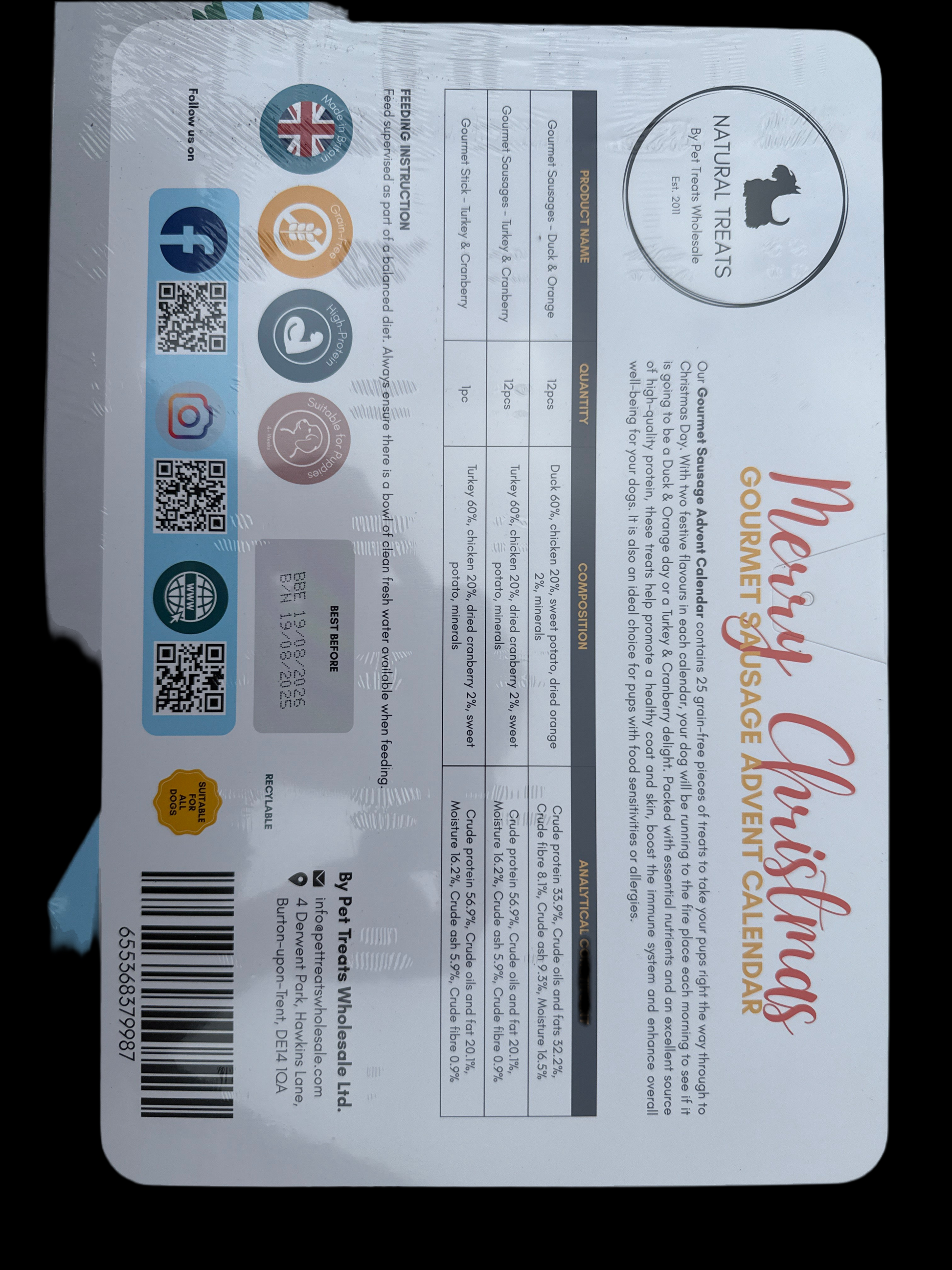 Gourmet Sausage Advent Calendar contains 24 grain-free sausages to take your pups right the way through to Christmas Eve and, a Gourmet Turkey and Cranberry Stick on Christmas Day!