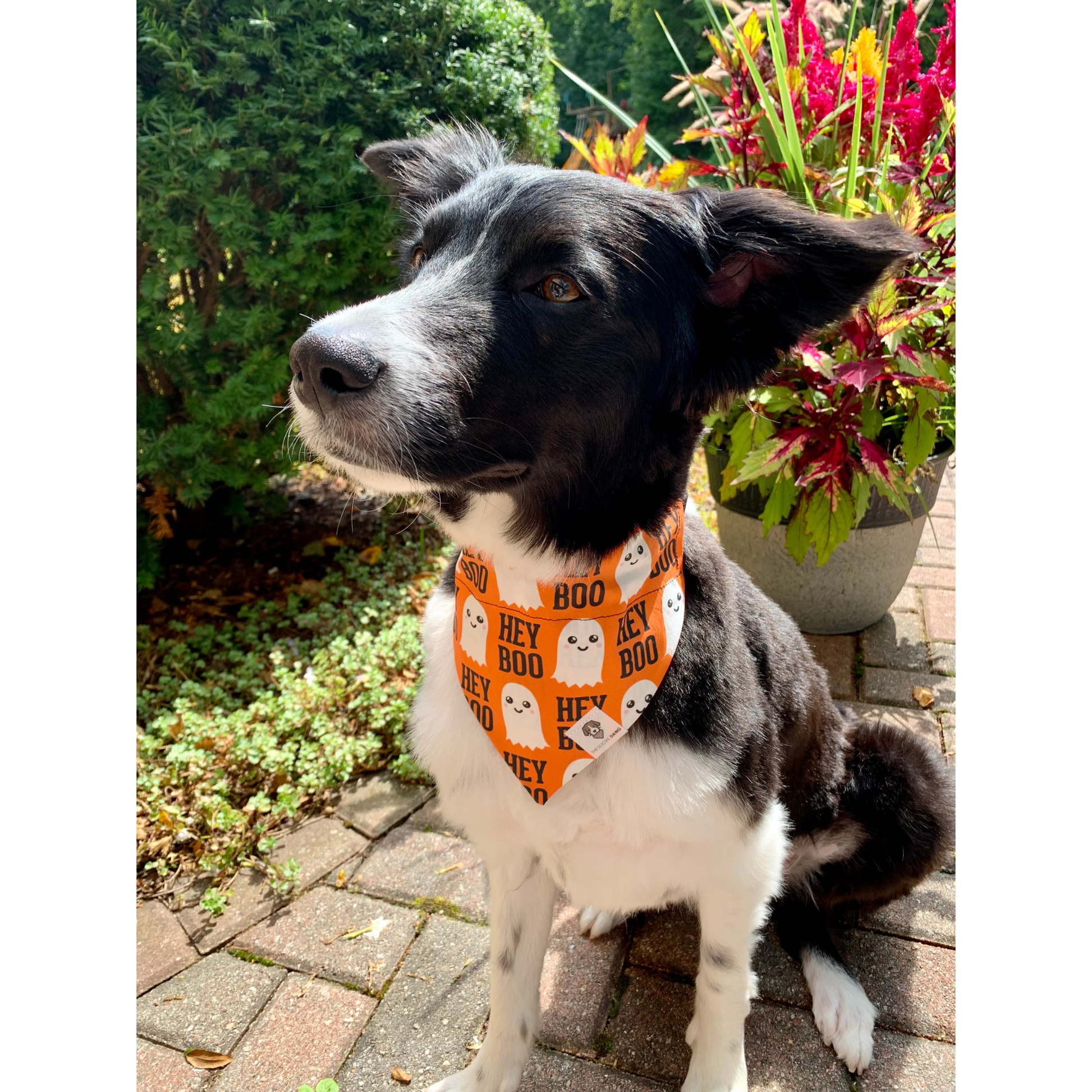 The over the collar bandana makes it easy to slip onto your dawg's collar
