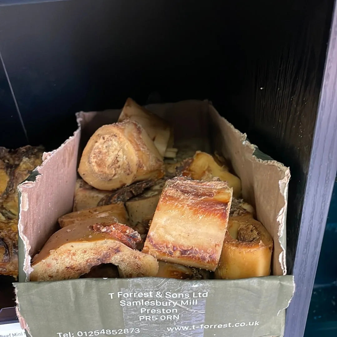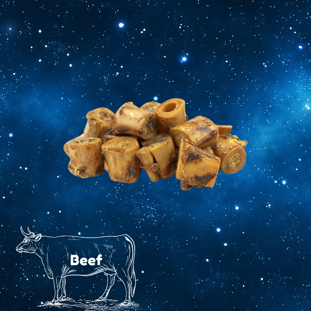 Introducing the perfect boredom-busting treat for small dogs - Pup Planet Deli's Beef Mini Marrow Bone! Slowly roasted for maximum flavor, these bones also help reduce plaque for better dental health.