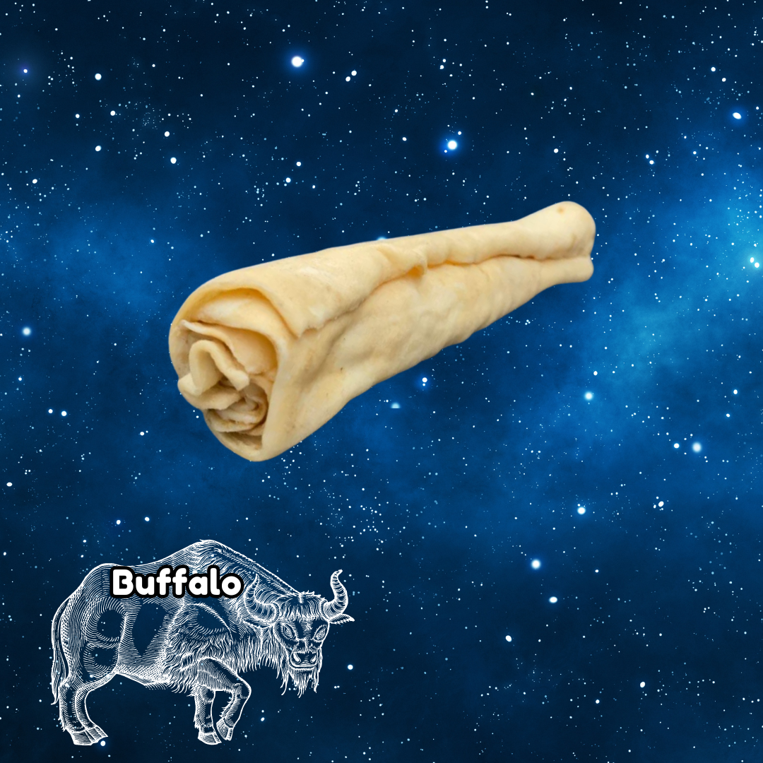Introducing Pup Planet Deli's Buffalo Smoked Meat Roll - a 100% buffalo treat that not only satisfies your dog's chewing needs, but also helps keep their teeth clean by removing tartar.