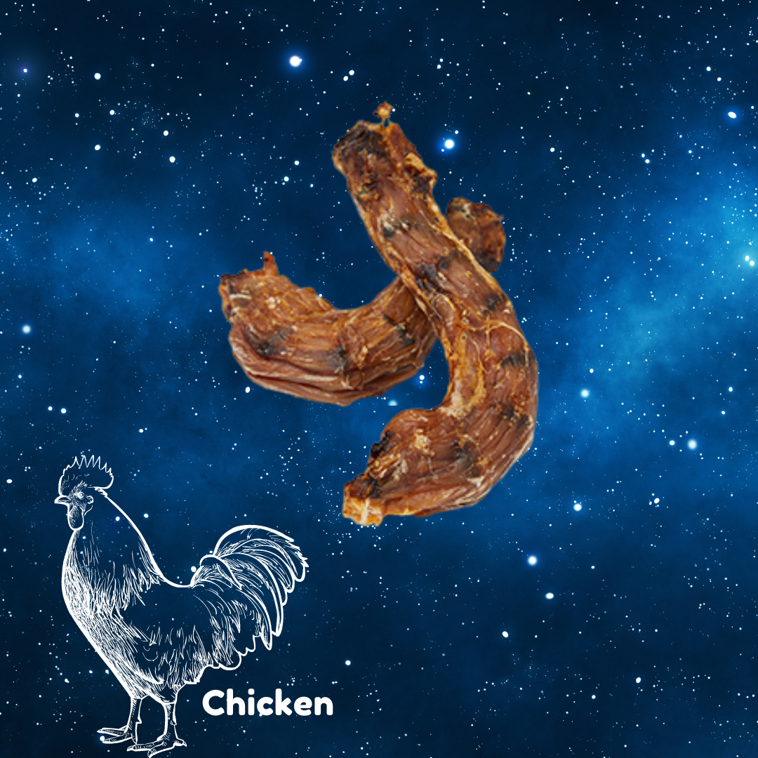 Pup Planet Deli's Dried Chicken Necks are a natural treat for your furry friend. These single necks are high in protein, low in fat, and contain glucosamine for healthy joints. Treat your pup to a delicious and nutritious snack!